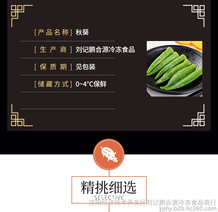 本网页所展示的有关【速冻秋葵 冷冻秋葵速冻食品 速冻蔬菜 新鲜蔬菜冷冻厂家直销_蔬菜_沈阳经济技术开发区刘记鹏合源冷冻食品商行】的信息/图片/参数等由农产品之家的会员【沈阳经济技术开发区刘记鹏合源冷冻食品商行】提供,由农产品之家会员【沈阳经济技术开发区刘记鹏合源冷冻食品商行】自行对信息/图片/参数等的真实性、准确性和合法性负责,本平台(本网站)仅提供展示服务,请谨慎交易,因交易而产生的法律关系及法律纠纷由您自行协商解决,本平台(本网站)对此不承担任何责任。您在本网页可以浏览【速冻秋葵 冷冻秋葵速冻食品 速冻蔬菜 新鲜蔬菜冷冻厂家直销_蔬菜_沈阳经济技术开发区刘记鹏合源冷冻食品商行】有关的信息/图片/价格等及提供【速冻秋葵 冷冻秋葵速冻食品 速冻蔬菜 新鲜蔬菜冷冻厂家直销_蔬菜_沈阳经济技术开发区刘记鹏合源冷冻食品商行】的商家公司简介、联系方式等信息。