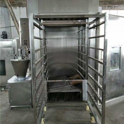 奥鑫机械烟熏炉具有蒸煮、烟熏、烘干、上色功能烟熏炉时间、温度、湿度、排风大小等状态参数,操作非常简单。烟熏炉也叫烟熏箱,蒸熏机,熏蒸机,具有优异的发烟及循环系统,可使炉内的烟雾均匀分布,从而使肉制品着色均匀,色泽美观,保证产品具有较高的出品率