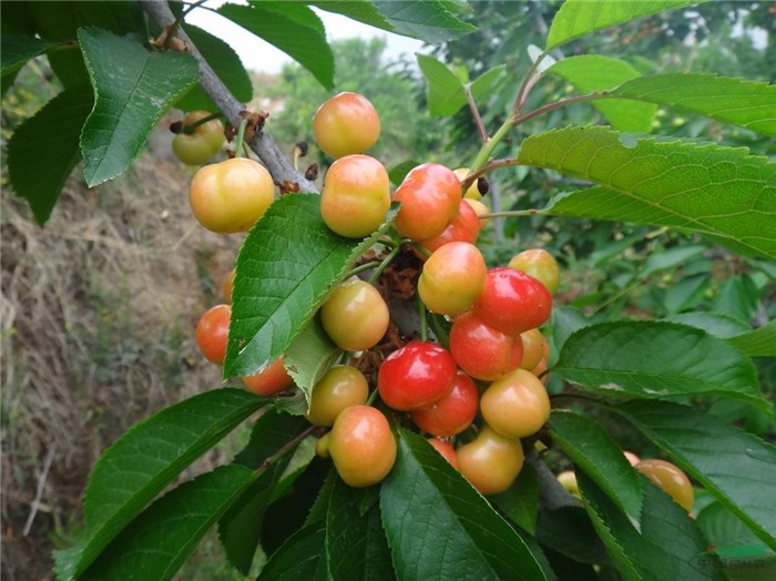 矮化樱桃苗 美早樱桃苗;是一个果大、质优、肉硬、耐贮运、早丰产的中熟优良品种。果实大,均果重9克,大果12克,果个略大于红灯,风味比红灯好。果型宽心脏形,大小整齐,果顶稍平,果柄较粗短。果皮全紫红色,有光泽,俄罗斯八号樱桃,鲜艳美观,充分成熟时为紫色。肉质脆而不软,肥厚多汁,风味酸甜可口。可溶性固形物含量为17.6%。5月底6月初成熟,成熟期比红灯晚。 该品种树势强建,树姿半开张,樱桃,幼树萌芽力、成枝力较强。适宜的授粉品种为萨米脱、先锋、拉宾斯。定植三年结果,五年丰产。是一个有前途的中熟品种。