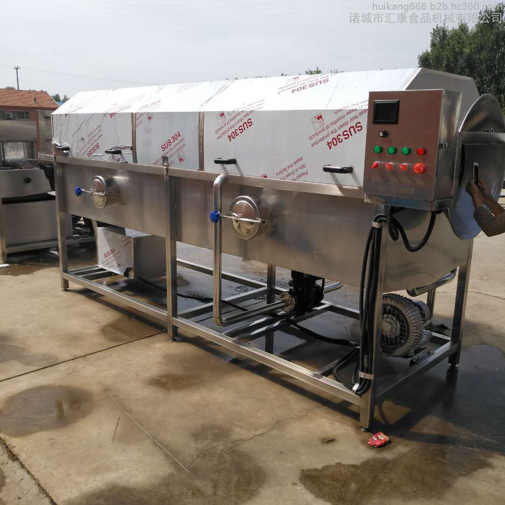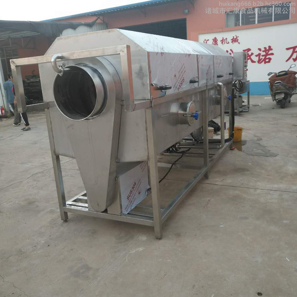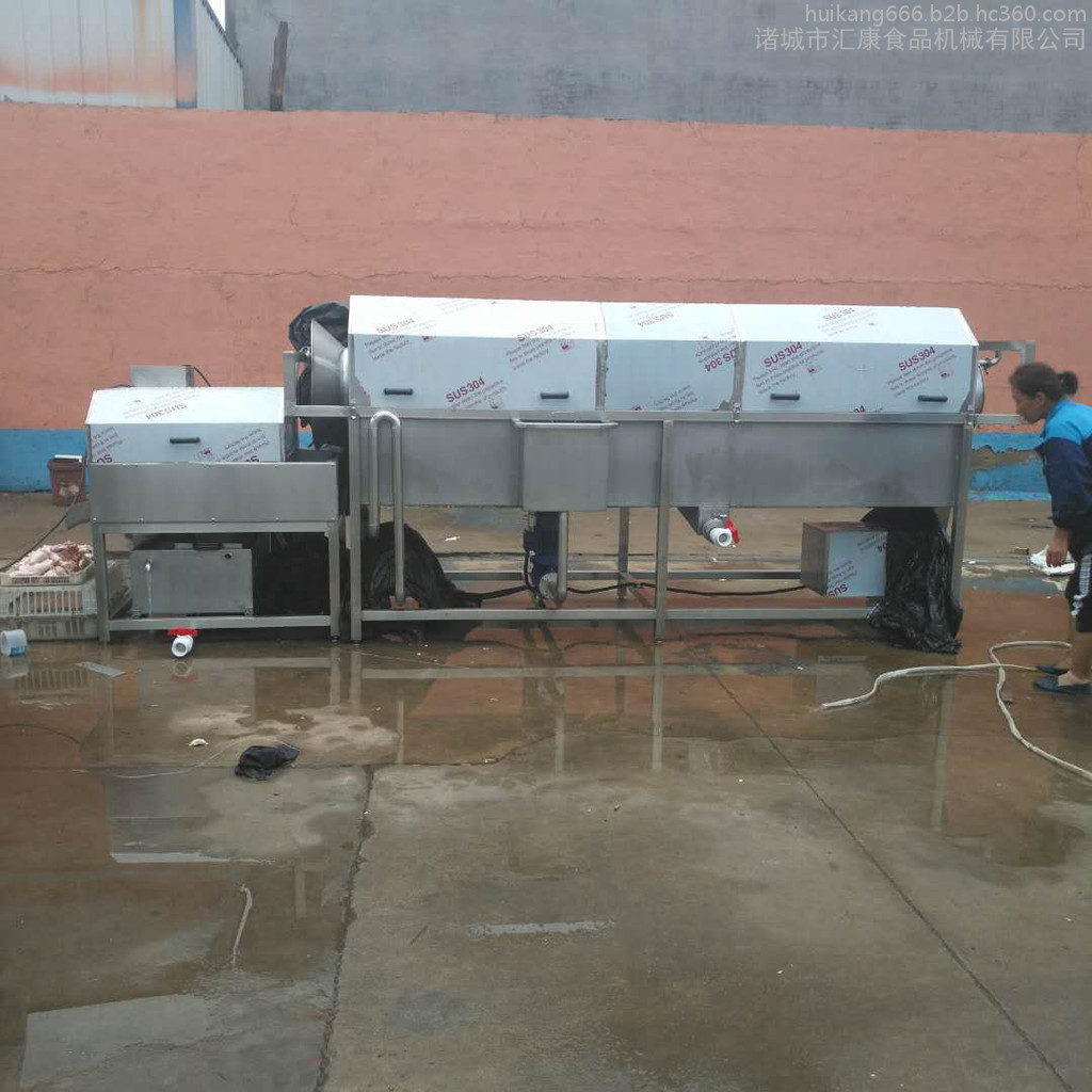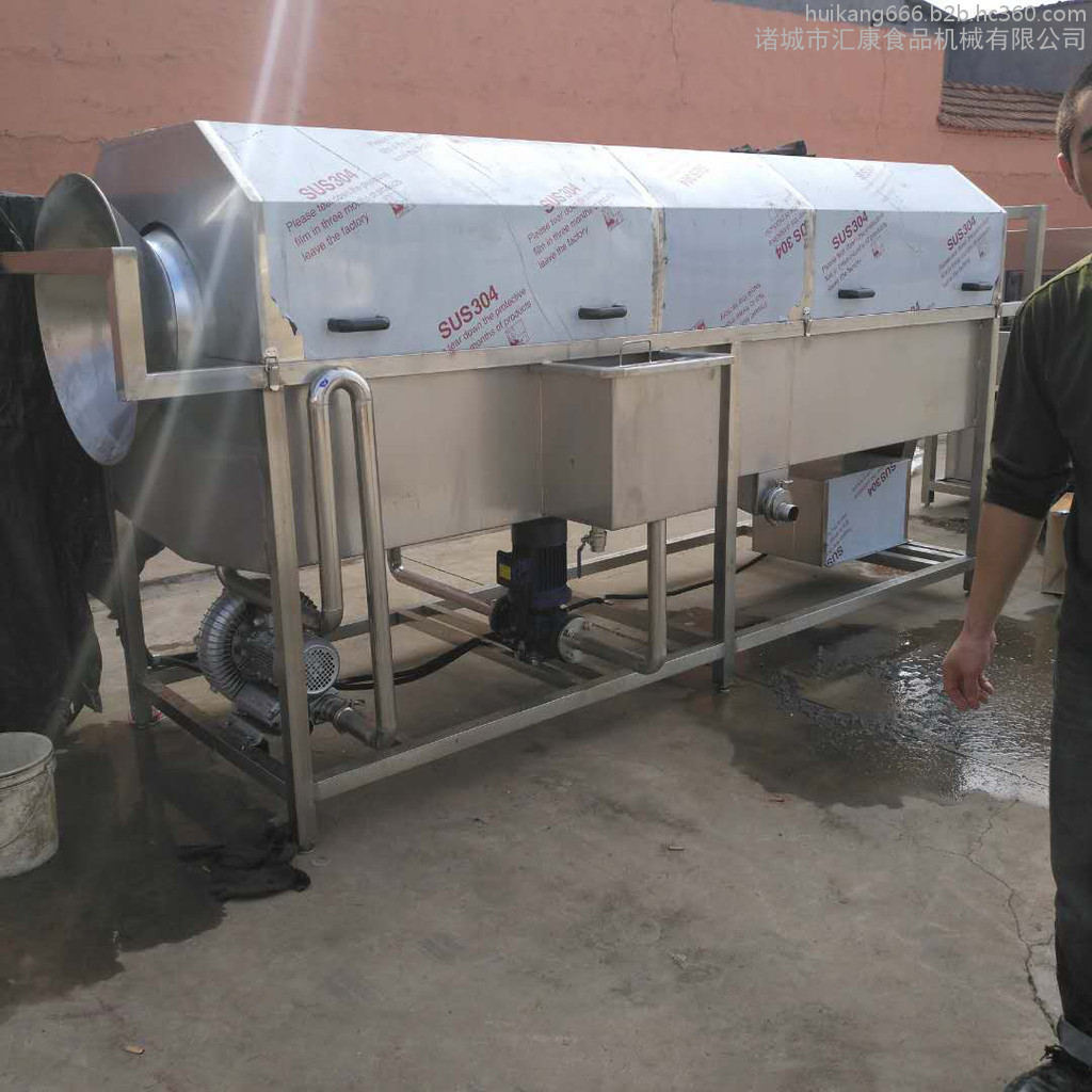 供应汇康牌TQX-3肉制品包装袋清洗机,乡巴佬系列清洗风干线,食品袋清洗机报价 厂家直销,生产包装袋清洗机,去油污洗袋机,食品袋清洗风干流水线,生产食品袋清洗机,火腿肠清洗风干专用设备,肠类清洗设备,生产滚筒毛刷清洗机,包装袋清洗机,袋装食品清洗机 滚筒清洗机机:体采用优质不锈钢制造加工,洗袋机采用高压喷淋+滚筒清洗,主要分为两段,可以段为加入清洗剂喷淋的去油污段,第二段为清洗净洗段,适用于包装物摺少的、污渍少的包装袋使用。可跟风干设备对接,经过旋翻至振动拨料上机后输送到软包装风干机上进行吹干,即可贴标装箱。适用范围:适用于各种软包装、袋装食品完毕后表面有污渍进行去污的清洗、去除油污、油垢。 特点: 1、本系列清洗机主要由筒体 、水槽、增压喷淋、传动机构、机架及外包板等部件组成。 2、本系列产品采用滚筒旋转式清洗,滚筒壁上冲Φ3-15mm孔,滚筒内采用螺旋导向板推进物料,在清洗过程中翻转物料,有利于物料的洗净。 3、采用高压水清洗,水源可选用自来水直连喷淋管和蓄水箱加高压泵两种。可连续生产,自动出料,对特殊品种,可反复倒顺清洗至洗净。 4、筒体、进料口、出料口、喷淋管及外包板全部采用优质不锈钢板制作。