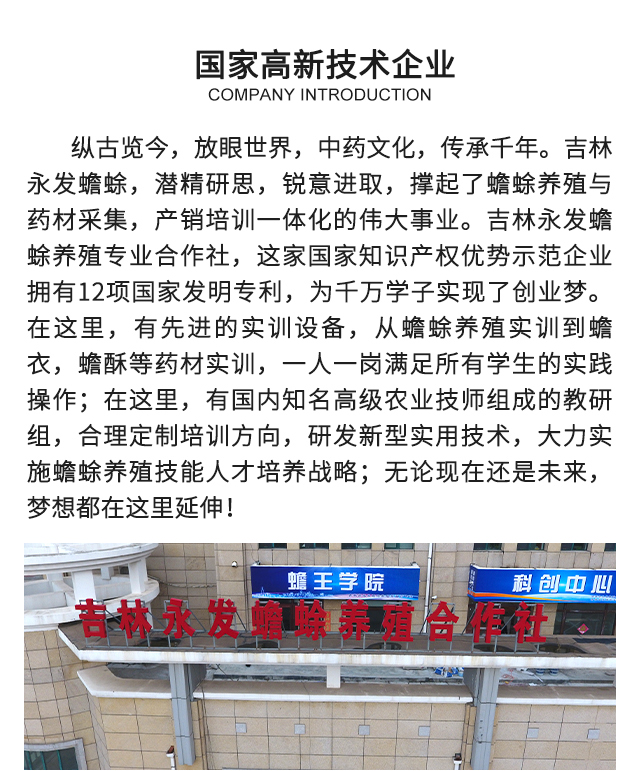 | 生产厂家 | 吉林市永发蟾蜍养殖专业合作社 |