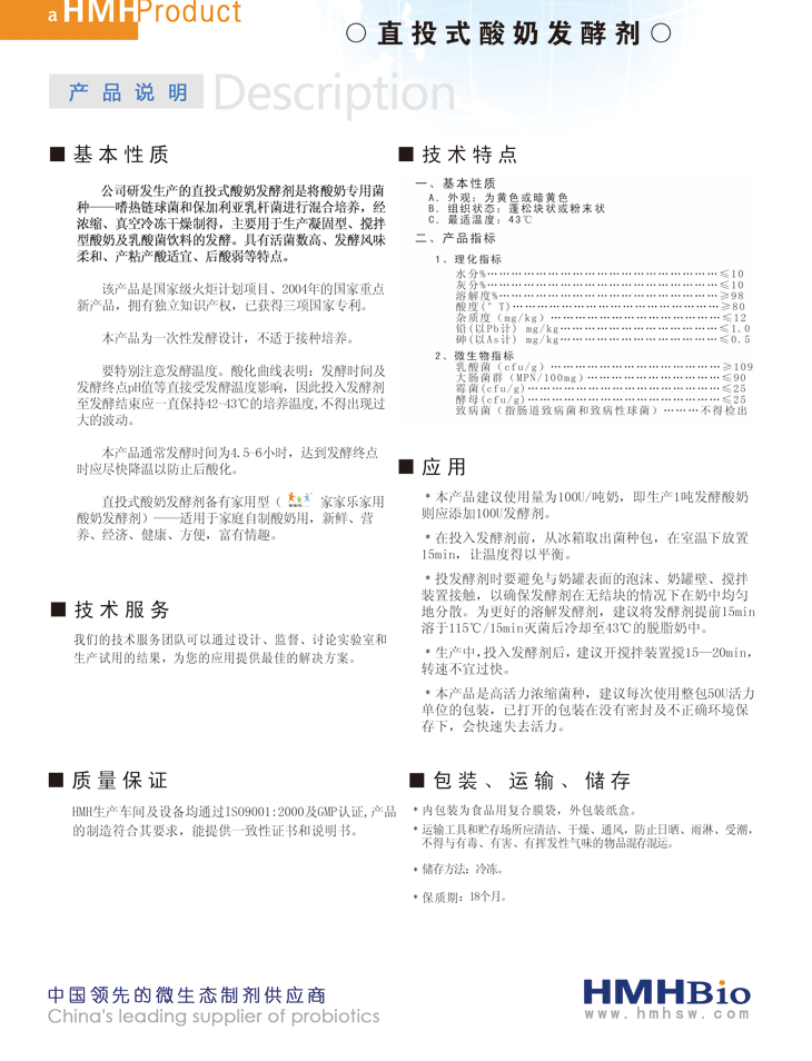 我公司生现生产的工业菌种为了迎合市场的需要,现有适用于冷饮店、酸奶屋及中小型企业用的不同活力包装的菌种。