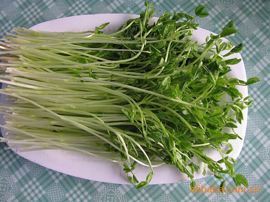 松柳苗:(三角豆苗)用松柳种子采用无土栽培生产出来的芽苗菜,还含有不饱和的脂肪酸,蛋白质,淀粉、纤维素、还含有多种矿物质、氨基酸、丰富的磷、钙、钾等微量元素,口感清爽脆嫩,,可凉拌、炒、烫、做汤料,是一种无公害的绿色特菜。每盘用种量0.5斤,产苗3斤左右。