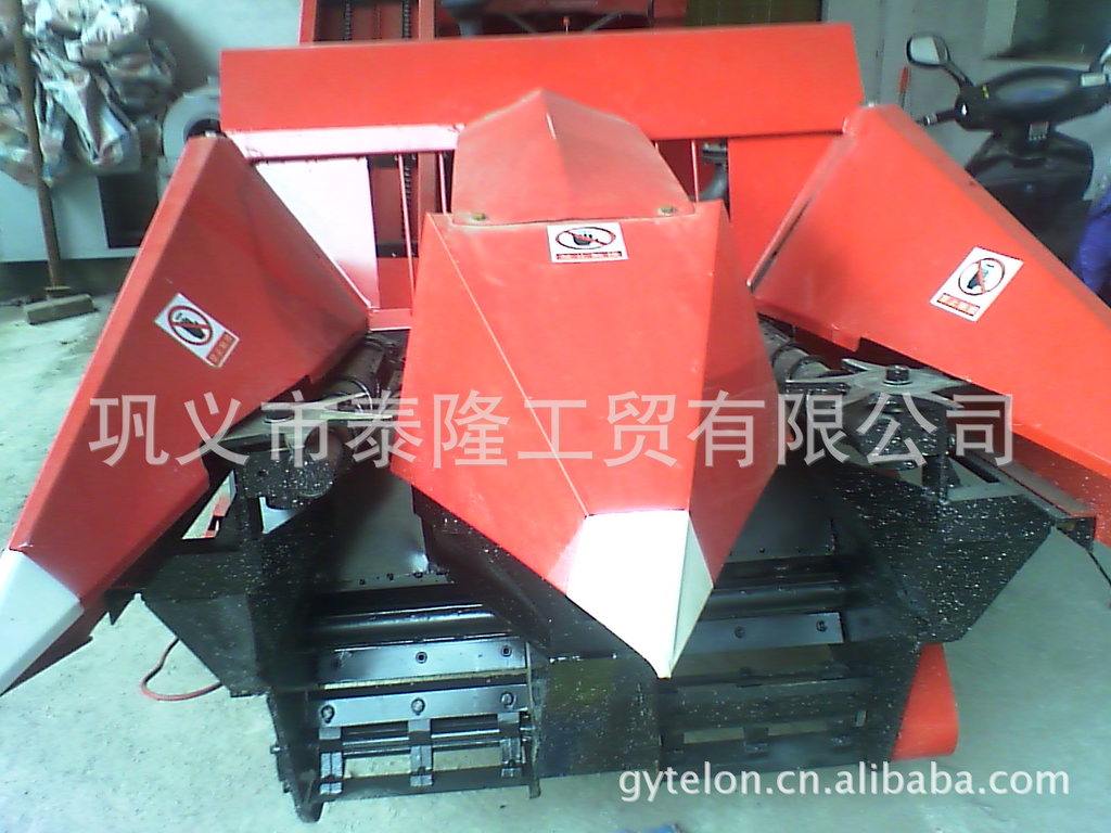 主要有割杆装置、输送装置、液压升降器等组成。作业时,机器沿玉米垄方向前进,割刀将玉米秸秆割掉,秸秆通过上、中、下三条输送链条右侧方向输出,并自然摆放,完成收割。