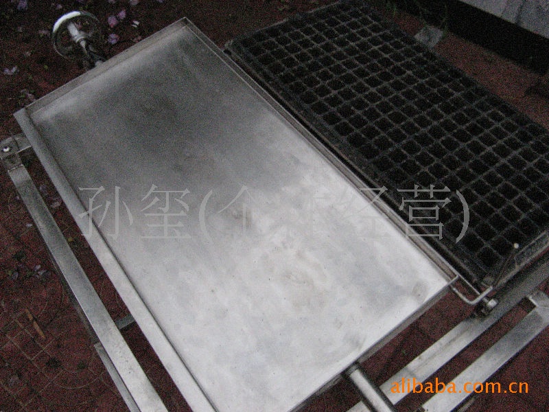 2.翻过播种机的盘,把装有草炭土的穴盘放入小车槽内并推到种子下面,关闭电源,敲击播种机一两下,拉出播好的穴盘,换下一穴盘即可。