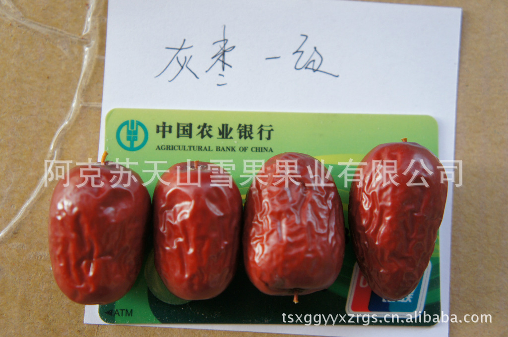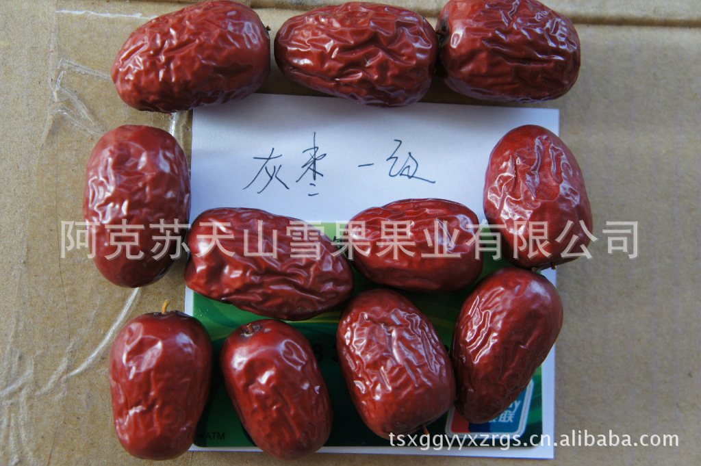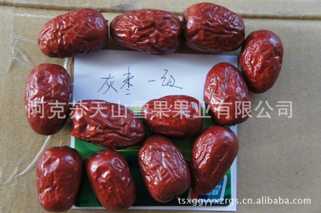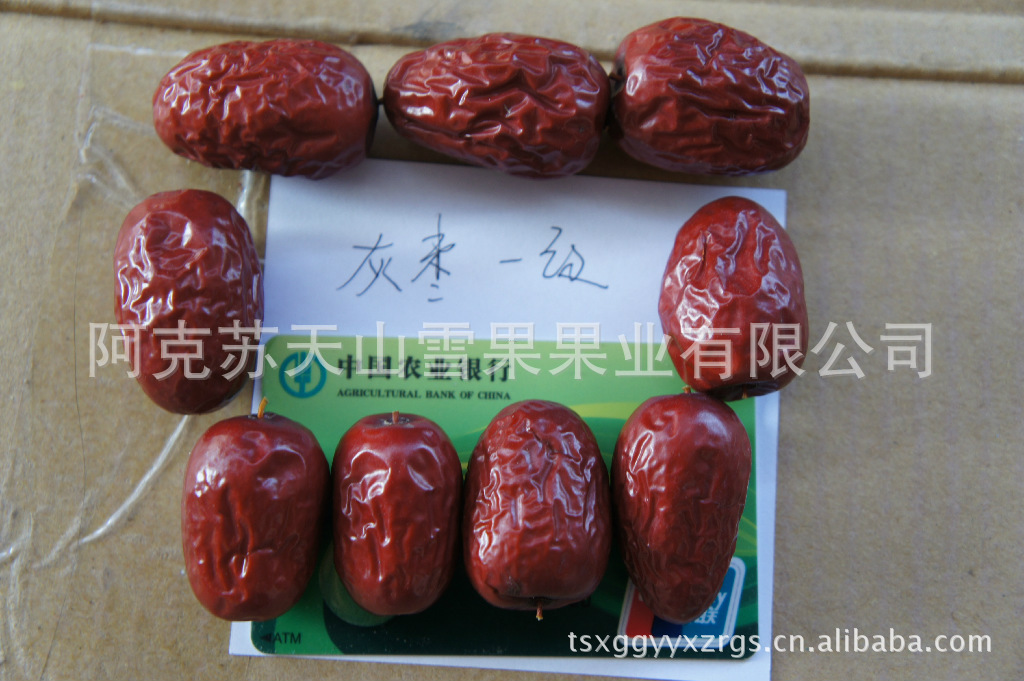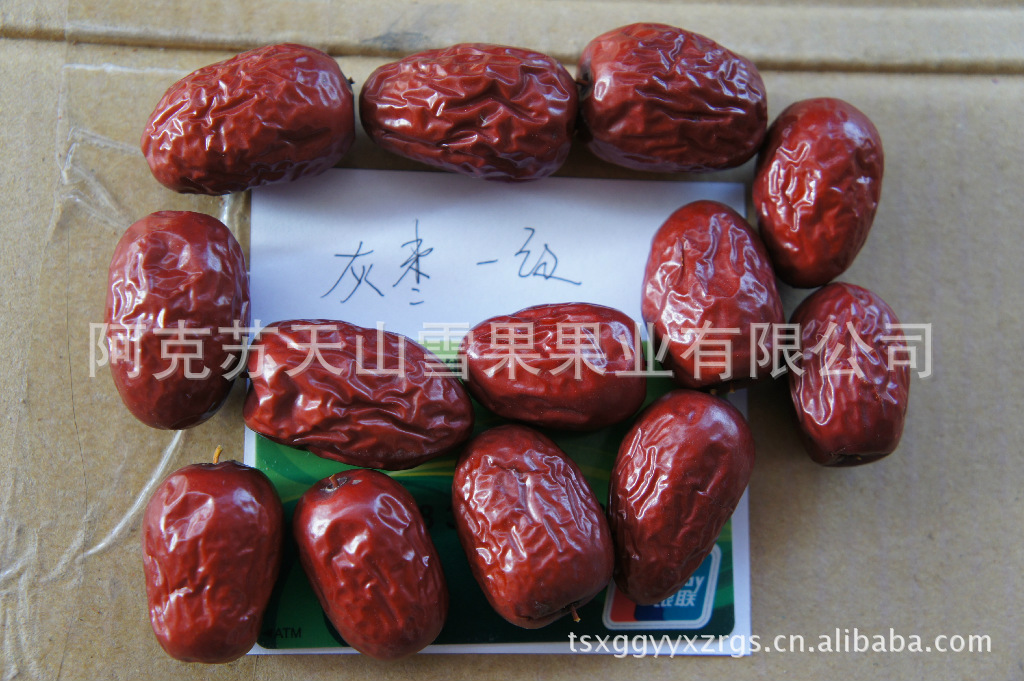 自新疆南疆阿克苏的红枣(又名灰枣),是红枣中的优良品种,肉质细腻,味道甜,口感非常好,是枣中精品,是新疆喜食红枣的人最喜欢的红枣品种之一。