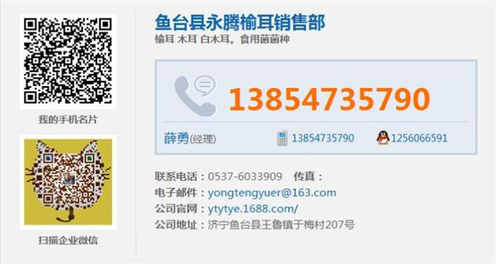 本网页所展示的有关【榆耳-山东永腾榆耳-榆耳哪里收购_食用菌_鱼台县永腾榆耳销售部】的信息/图片/参数等由农产品之家的会员【鱼台县永腾榆耳销售部】提供,由农产品之家会员【鱼台县永腾榆耳销售部】自行对信息/图片/参数等的真实性、准确性和合法性负责,本平台(本网站)仅提供展示服务,请谨慎交易,因交易而产生的法律关系及法律纠纷由您自行协商解决,本平台(本网站)对此不承担任何责任。您在本网页可以浏览【榆耳-山东永腾榆耳-榆耳哪里收购_食用菌_鱼台县永腾榆耳销售部】有关的信息/图片/价格等及提供【榆耳-山东永腾榆耳-榆耳哪里收购_食用菌_鱼台县永腾榆耳销售部】的商家公司简介、联系方式等信息。