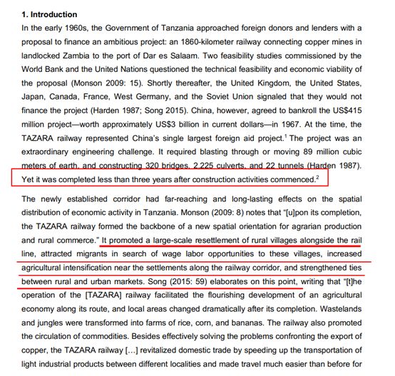 这篇多达68页的报告,先是回顾了中国上世纪60年代给非洲的坦桑尼亚和赞比亚援建的“坦赞铁路”,称当时这条铁路的修建面临着很多自然条件的挑战,但中国人却在短短3年内就完成了这条连接两国的大工程。